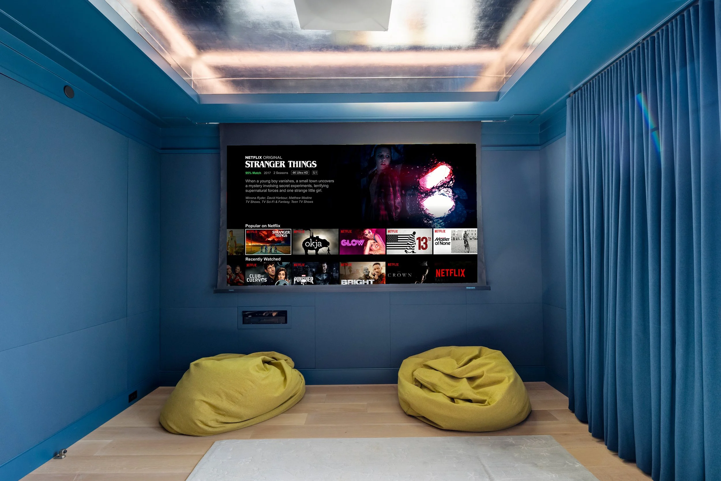 108” Laser projector in the movie theatre - the projector tray is hidden and will come down upon command